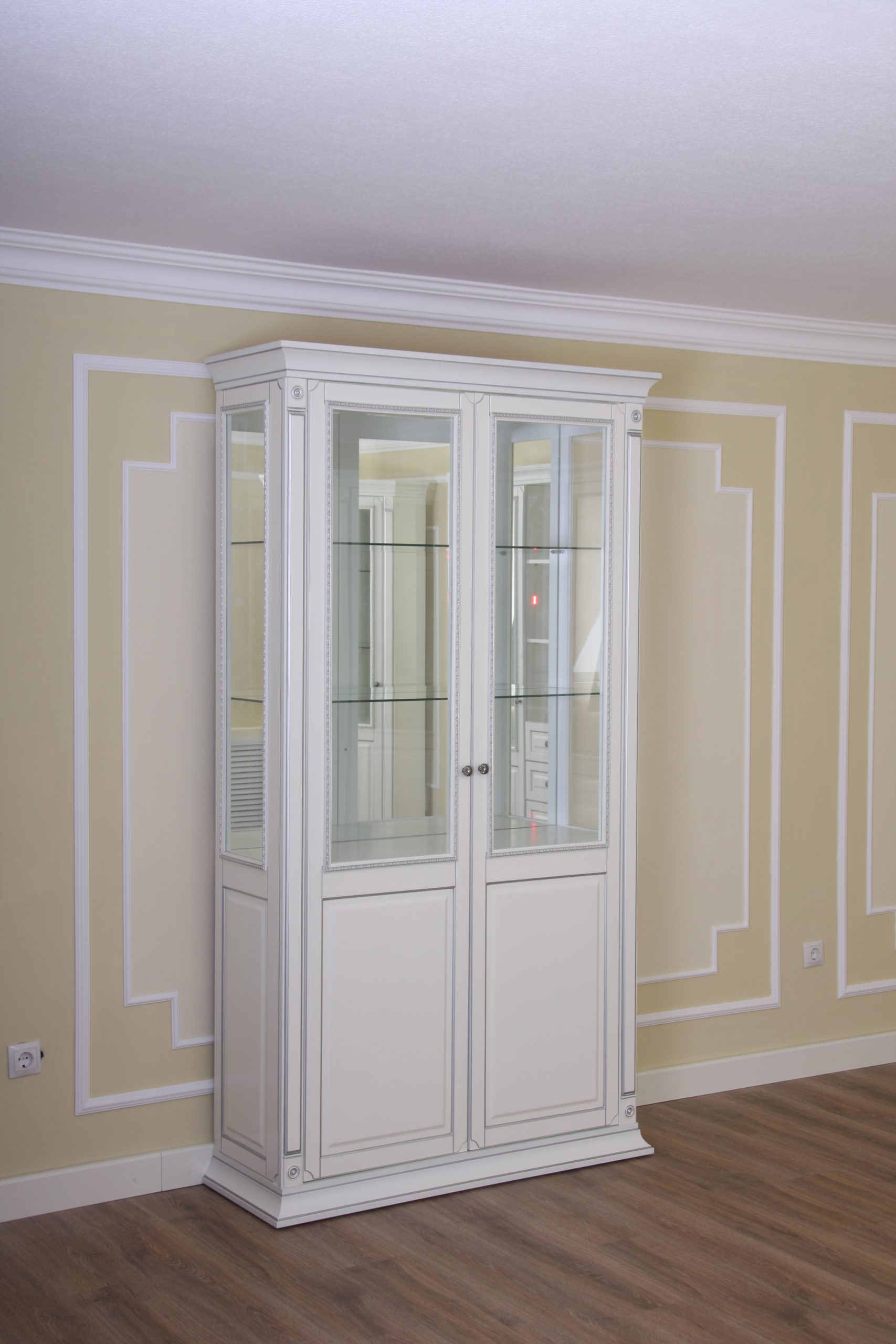 Станет прекрасным украшением любой гостиной. Благородство белого цвета и легкая патина придает этой модели строгость и элегантность.